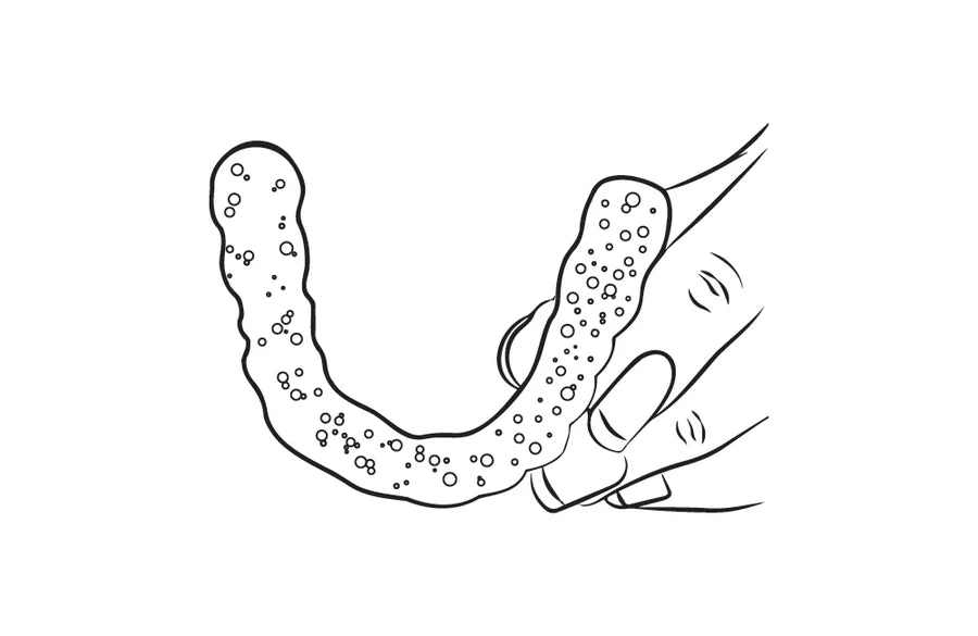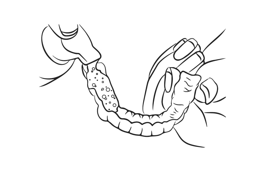 Извадете алайнерите/ретейнърите и нанесете до едно пълно впръскване от пяната във всяка шина. (Малкото количество прави чудеса!)
