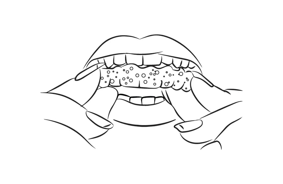 Поставете алайнерите/ретейнърите, изплюйте излишната пяна и я оставете да се разпадне – не е нужно изплакване. Използвайте до 2 пъти дневно. При чувствителност – намалете честотата.